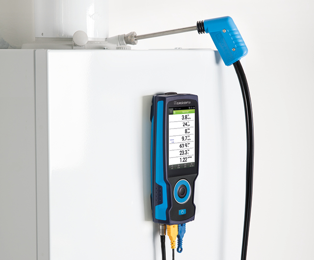 The EUROLYZER® S1 Starter Set perform accurate measurements of O2, CO/H2, temperatures, pressure (draft) as well as precise calculation of various parameters such as lambda, combustion efficiency (Eta), flue gas loss (qA), dew point and CO2.