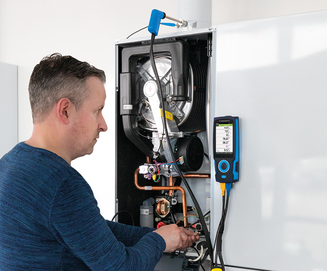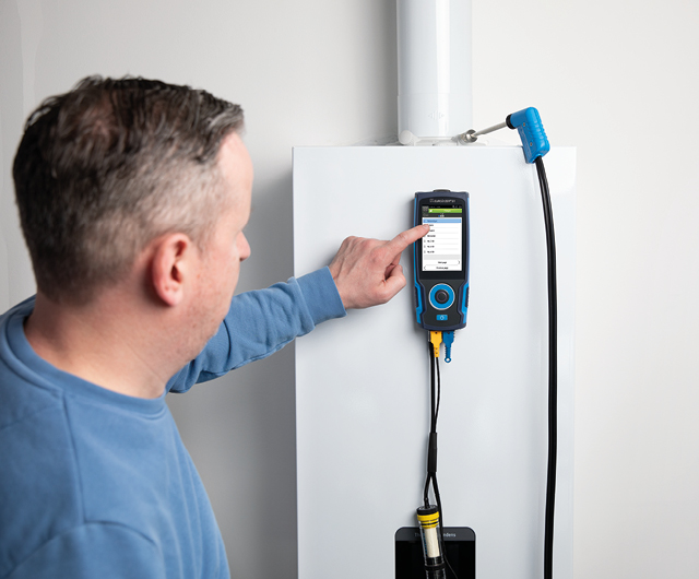 Professional and robust flue gas analyzer set for servicing and inspecting oil, gas and pellets-fired heating systems.