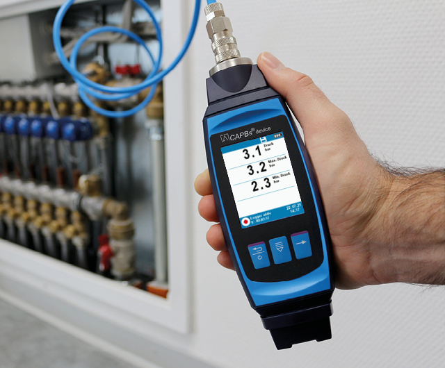 CAPBs® d-set PT70 - pressure logger is suitable for tightness and load test of gas lines, water pipes, floor heating or other systems up to 25 bar test pressurePressure transmitter for measurements in liquids and gaseous media.