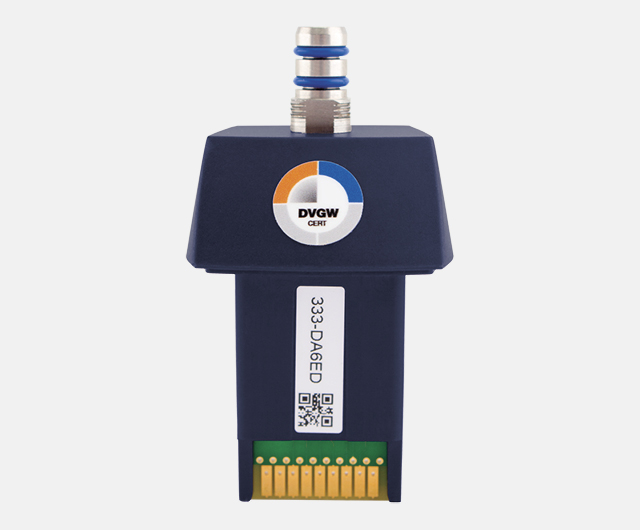 DVGW-tested unit for leak tightness checks of gas pipes according to TRGI. This pressure sensor measures up to 2 bar, and features one D8 mm pressure connection.