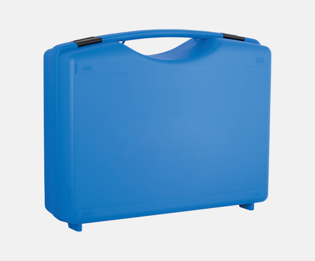 Light and robust plastic case with foam inlet, document compartment and space for accessories.