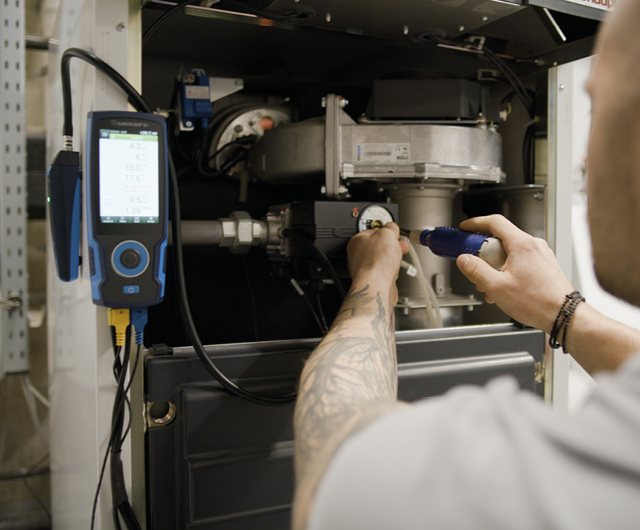 Robust and high quality flue gas analyzer set to setup oil, gas and pellets-fired heating systems.