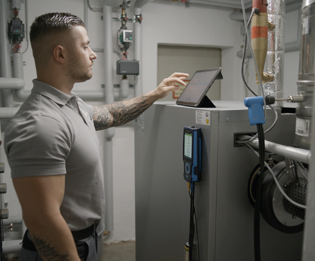 Professional and robust flue gas analyzer set for servicing and inspecting oil, gas and pellets-fired heating systems.