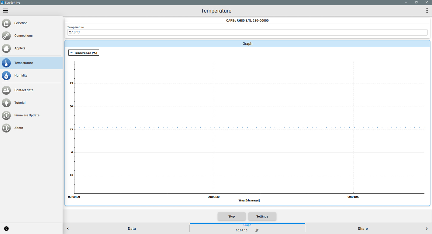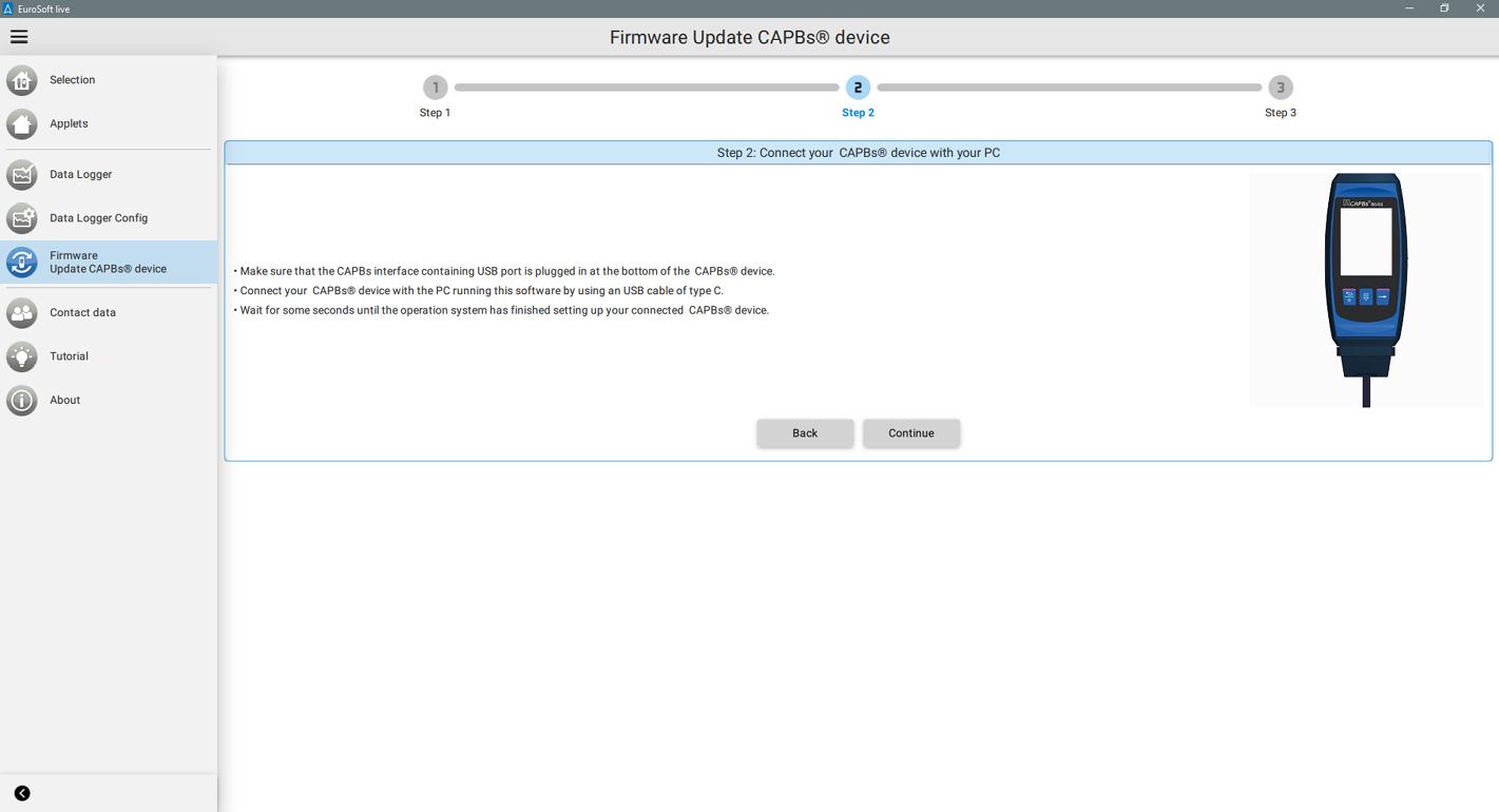 EuroSoft® live is the free Windows software for using all CAPBs® sensor units with a Windows PC. In conjunction with the CAPBs® device incl. CAPBs® interface logger, log processes can be conveniently configured, read out and processed on the PC. In addition, the software can be used for firmware updates.